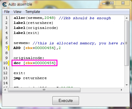 그러므로 2씩 증가시키려면 ADD [ebx+00000454],2 를 입력해주면 되겠죠?