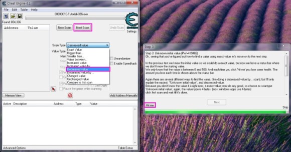 스캔타입을 Decreased value by로 선택후, 감소한 값을 입력해주시고 Next Scan을 클릭합니다.